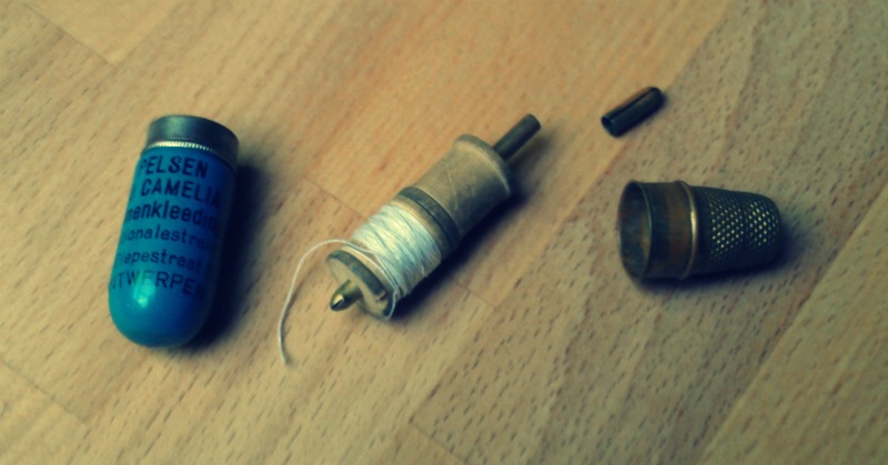 Plaats voor een vingerhoed, naald en draad. Schattig toch?