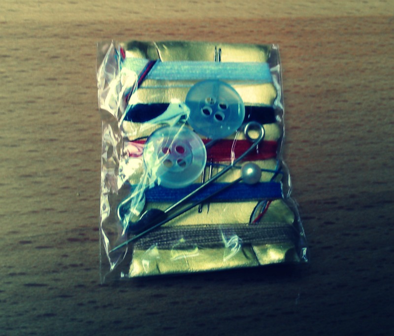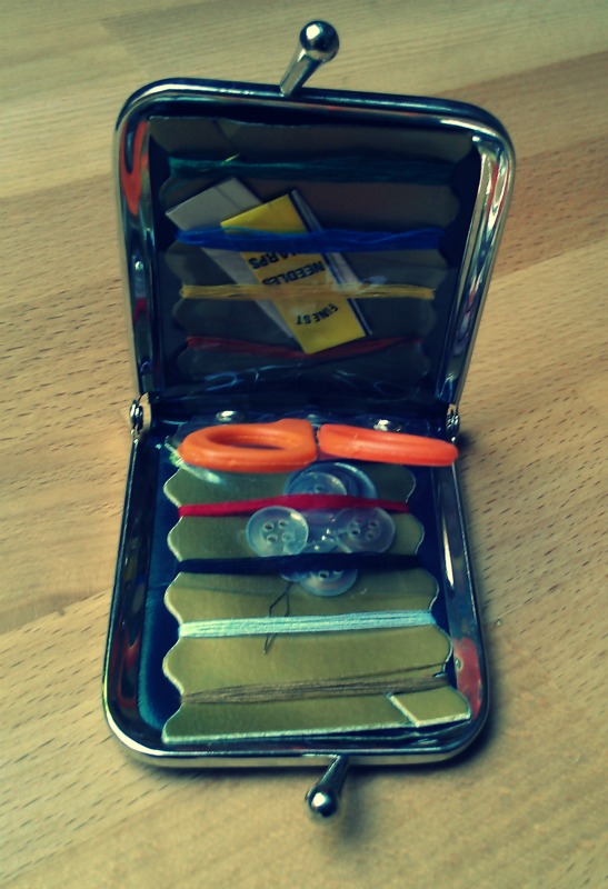 Ken je dat, zo van die setjes naaigerief om mee te nemen op reis? Zodat je een (nieuwe) knoop kan aannaaien, iets kan verstellen… je hebt ze in allerlei soorten. Zoals dit: