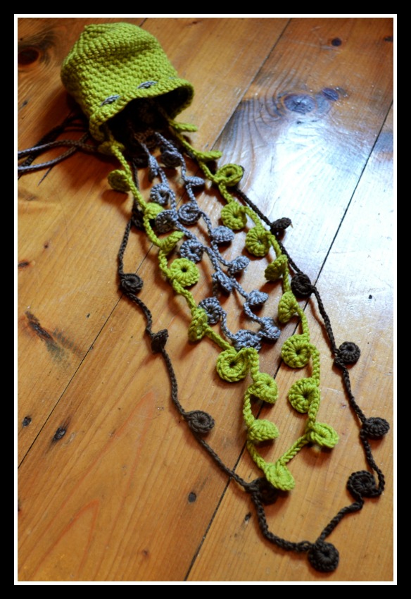 Tussen de 3 langlopende haakprojecten, was er tijd en goesting om eens iets anders te doen. Een verjaardagscadeautje bijvoorbeeld, geïnspireerd op de juweeltjes die ik eerder maakte.