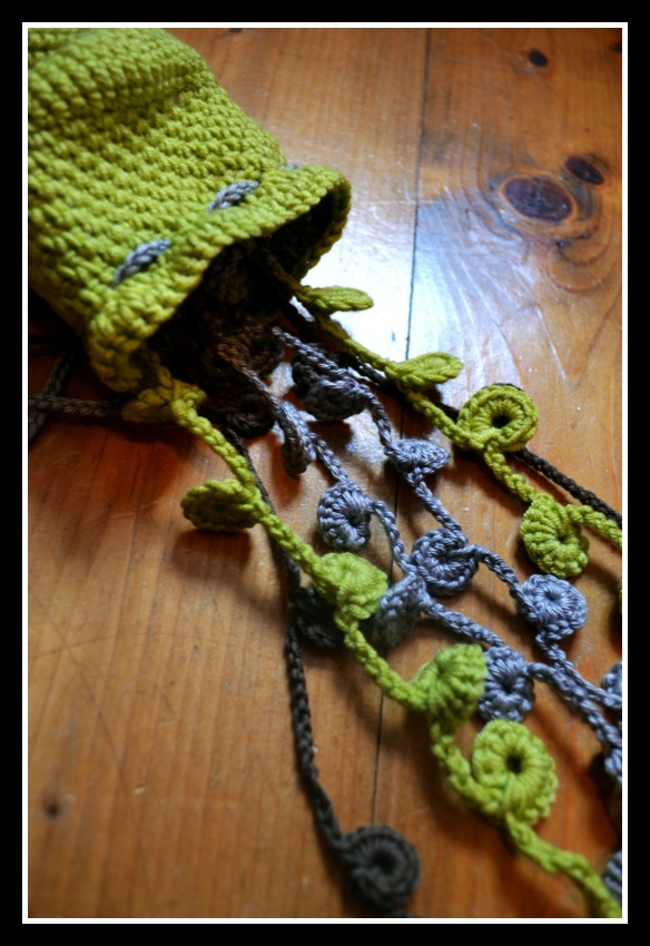 Toen dacht ik dat er ook wel nog wat tijd was om een zakje te haken waarin ik de kettinkjes kon steken, in plaats van ze in te pakken in cadeaupapier. Kan dienen om de juweeltjes op te bergen, maar kan ook nog voor andere dingen gebruikt worden. Altijd handig.