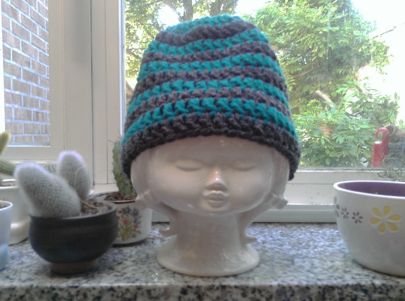Uiteindelijk ben ik voor dezelfde simpele muts gegaan die ik al een paar keer gemaakt heb, je kan wel zeggen dat dit een favoriet patroontje aan het worden is. Simpel om maken, en nog mooi ook. De kleurovergangen vergden wat oefening, maar lukten uiteindelijk ook heel mooi.