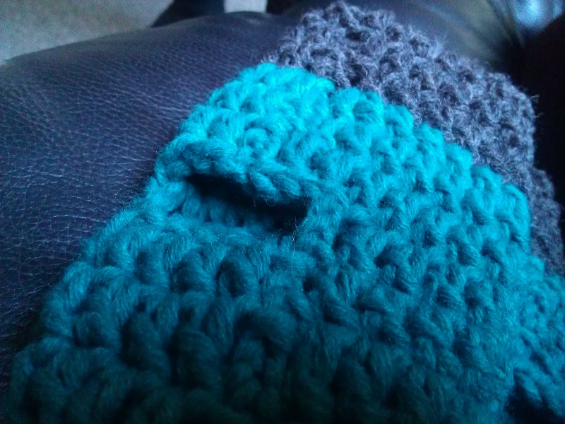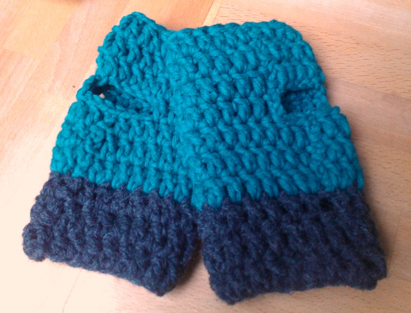 Ik had nog wat wol over, zag op Pinterest af en toe polsverwarmers langskomen, en heb er dan ook maar zo’n paar gemaakt voor de fietsende collega, dat komt altijd van pas. Met een patroontje van een al even lieve Facebookster. Facebook to the rescue, dat werkt altijd!