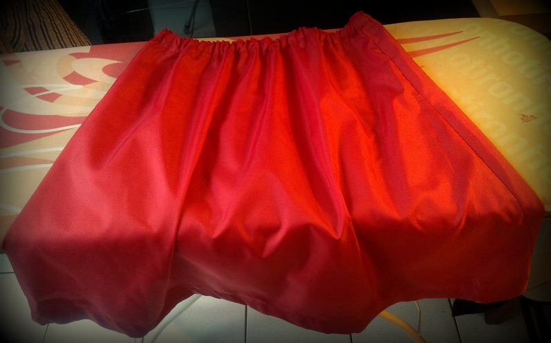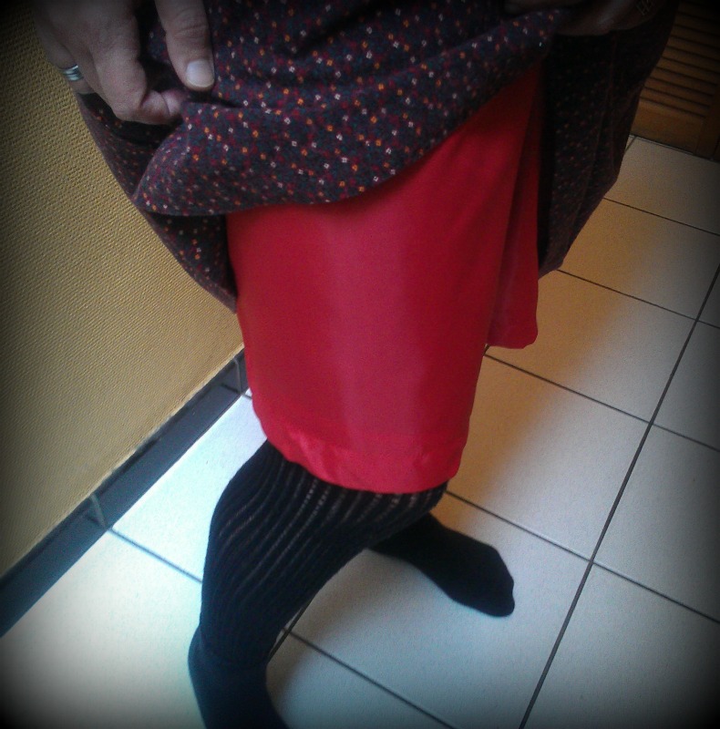 Stof eerst gekocht met de bedoeling een volgend rokske ermee te voeren. Niets van, rokje #1 plakte teveel aan mijn benen, dus werd besloten een onderrokske te maken, dat onder beide rokskes past/zal passen.