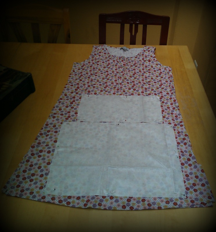 Wij doen hier ook aan recyclage: ooit zag ik in de Kringwinkel een kleedje in een heel leuk stofje. Dus kocht ik het kleedje voor 2 euro, om het later te verknippen.