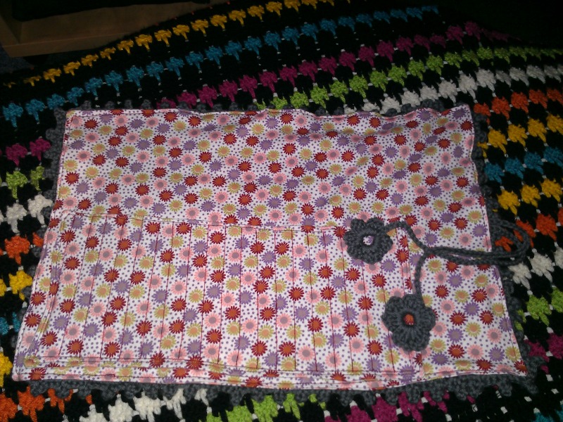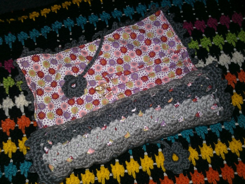 In ieder geval, op Pinterest kwam ik een mooi haaketuitje tegen, en dat was blijven hangen. Het was wel zonder werkbeschrijving. Later kwam ik een volledig genaaid etui voor stiften tegen. Dus besloot ik beide te combineren.