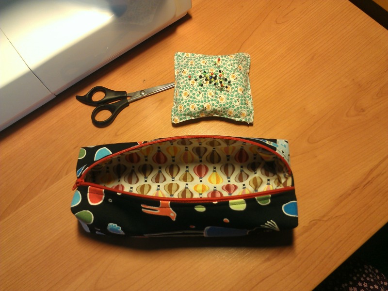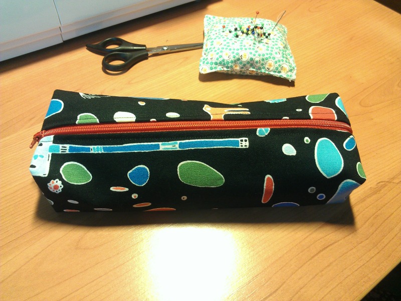 En kijk: ik heb het begrepen! Ik heb een pennenzak! Nog een beetje schots en scheef en vatbaar voor verbeteringen, maar ik heb nu tenminste door hoe het moet. Hoera! Weer iets bijgeleerd! Er zullen nog wel pennenzakken volgen…