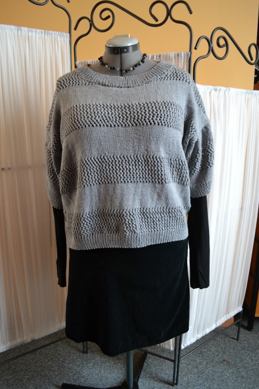 En nu heb ik dus een zelfgebreide trui. Ik ben er niet helemaal tevreden over, ik vind ‘m wat te groot. Zoals ik dat vaak ook vind van gehaakte spullen. Ik zal toch eens moeten overschakelen op maat medium in plaats van large, heb altijd schrik dat medium te klein zal zijn, maar als large te groot is, zal medium wel goed zijn zeker?