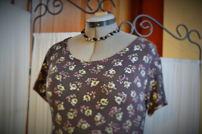 Ik had een beetje schrik wat dat zou geven bij het naaien, maar dat viel behoorlijk mee. Omdat ik geen donker garen had dat bij de stof paste (zwart had ik geen zin in, bruin heb ik domweg niet), heb ik gestikt met knalroze garen, roze dat ook in de bloemetjes zit, en dat komt heel mooi uit.