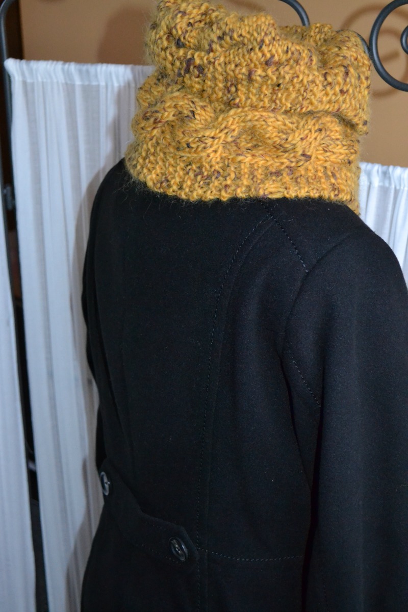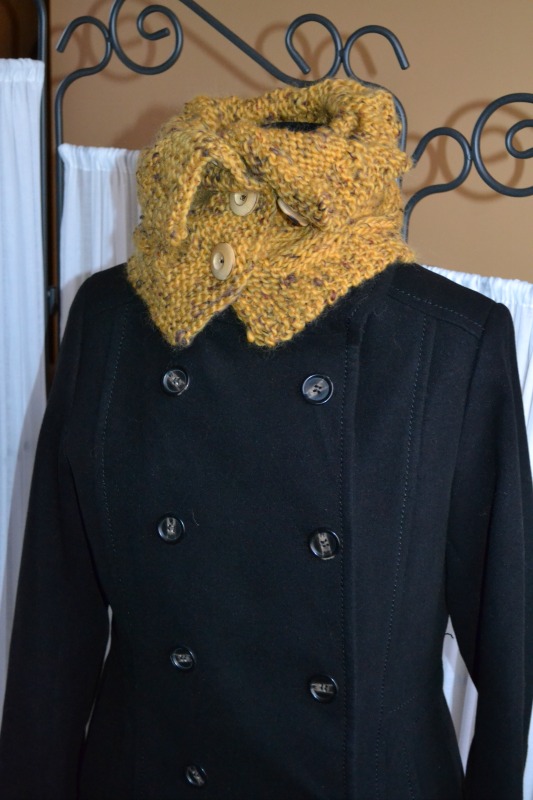 Het plan lag even in de lappenmand. Toen werd ik ziek. Kreeg ik acute goesting om iets te bestellen (ik denk dat het zo ongeveer ging). Zo gelijk comfort food, maar dan comfort bestelling. Bestelde ik wol en dikke breinaalden bij Wolshop-Grensstreek. Zag ik mooie knopen bij stoffen.net, dus kocht ik daar stoffen en ook knopen (ook voor een gilet die ik aan het breien ben) (anders doe ik dat nooit, knopen kopen, maar nu had ik het perfecte excuus). En beloofde ik de sjaal als nieuwjaarscadeau aan Sophie. Oh ja, uiteraard kocht ik ook het patroon voor de Solitude Cowl.