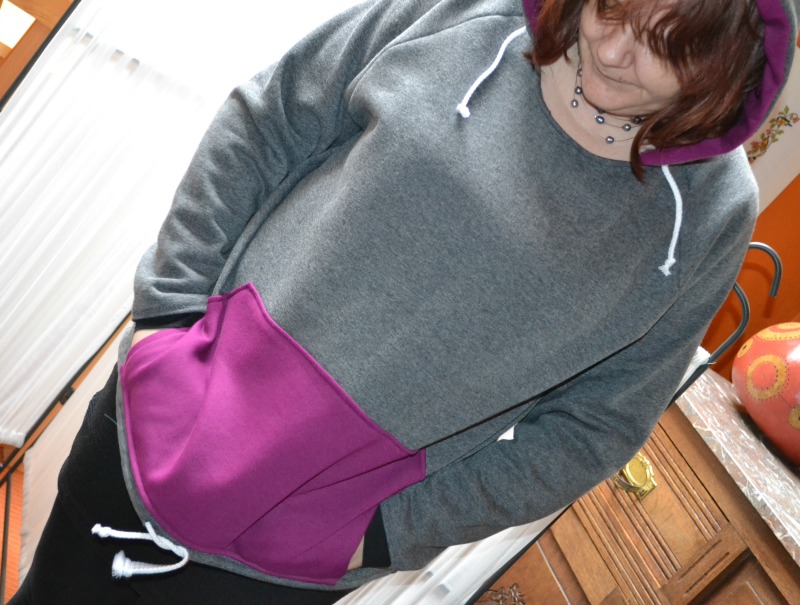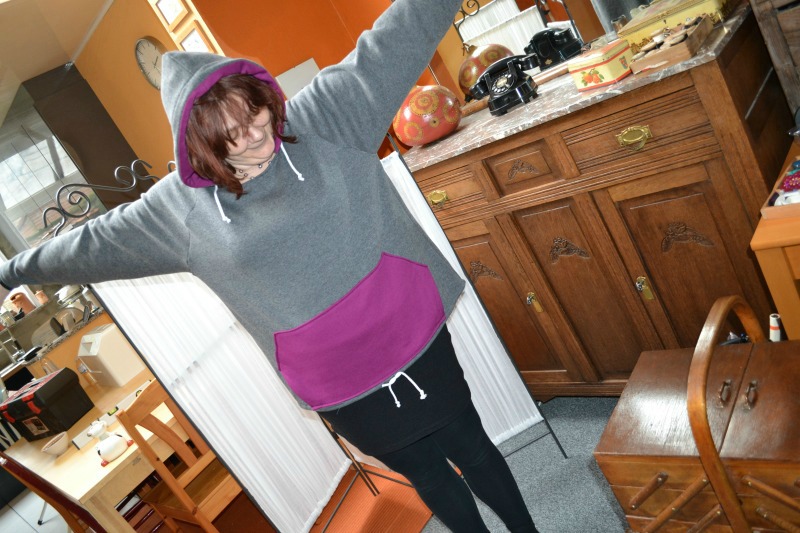 Maar nadat ik mijn nieuwe machine een tijdje uitgeprobeerd had, en wat tips over het naaien van rekbare stoffen gekregen in de naaimachineles van Mertens Service Center, was die moed ineens daar. En werd de trui redelijk vlot in elkaar gedraaid.