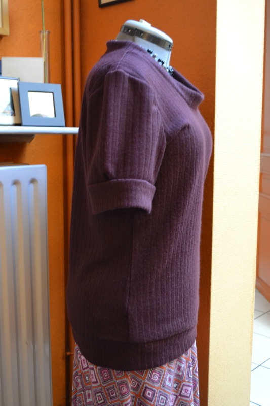 Dat was eigenlijk het enige probleem dat ik tegenkwam. Voor de rest ging alles supervlot, de stof naaide lekker, de maat zit perfect. De kraag is niet helemaal koosjer, maar ik vind ze leuk zo, en voor een testmodelletje kan het me helemaal niet schelen. En hier en daar een plooitje te veel in de mouwen, maar ach, wie ziet dat nu!