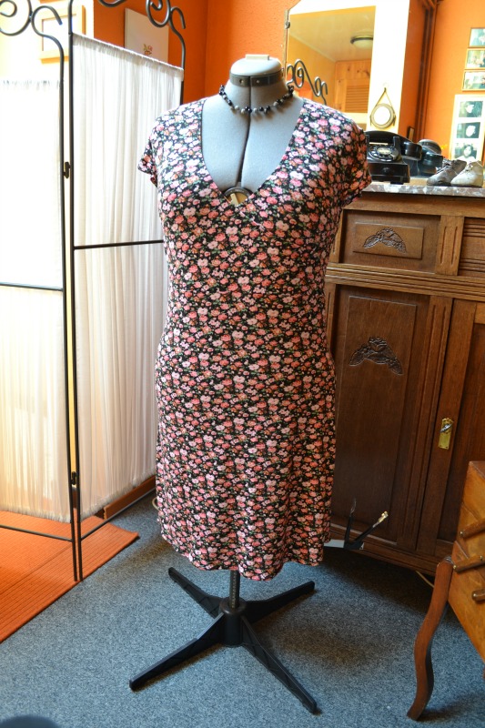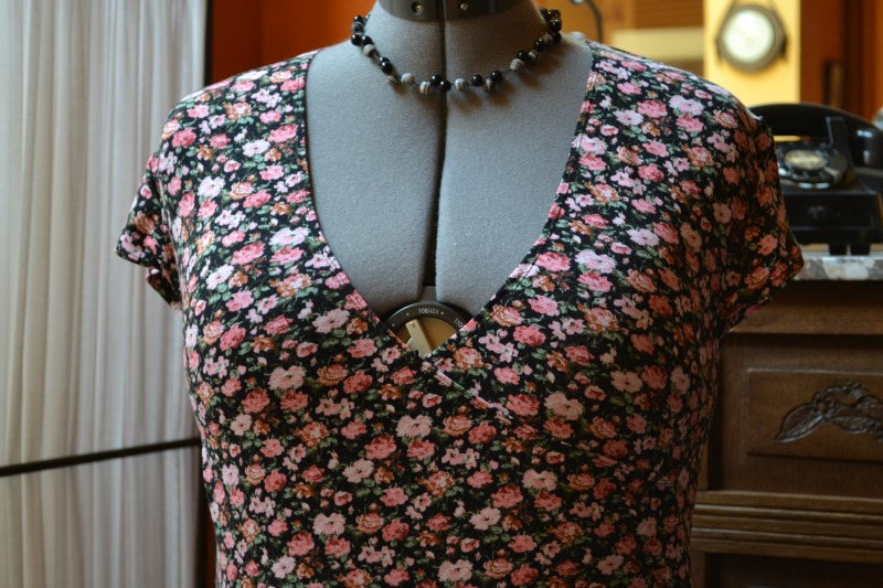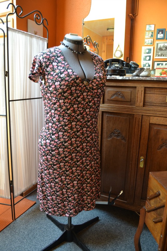 Stofje van Stoffen.net, dunne tricot. Meneertje Mertens vond het nogal druk, maar eens verwerkt was het toch mooi. Zoals ik een beetje verwachtte.