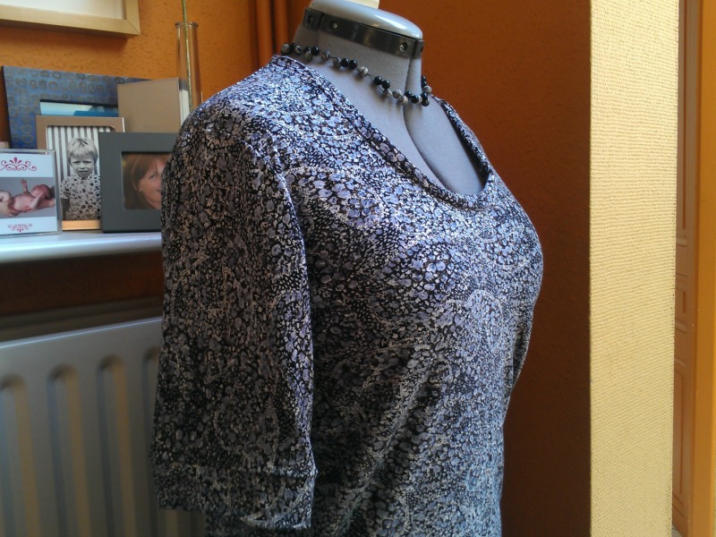 Maar voila, een eerste shirt om mee te slapen, in een tricotje dat ik in de solden kocht bij Stoffen Artevelde, en waarvan ik niet goed wist wat ik ermee moest aanvangen. Happy happy joy joy.