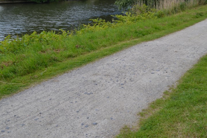 Zo rijden we schoon onder de Brusselsesteenweg door, en hoeven we die drukke weg niet te kruisen. Alleen vind ik het heel erg jammer, en dit is één van de grootste minpunten van deze drukgebruikte fietsroute, dat waar je vanop het fietspad (grind) de Fransevaart oprijdt, het er heel slecht bijligt.