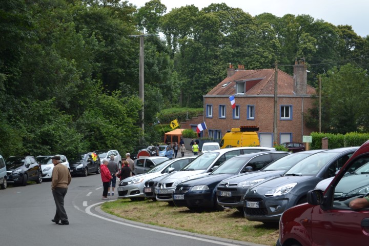 Maar zo vertrokken we dan gisteren om 7u ’s ochtends gezwind naar Mont Noir. Daar hadden we bij de verkenning een mooi plekje gevonden. Daar was nog plaats zat, en we posteerden ons naast vriendelijke Fransmensen in een camper, en naast ons kwam een meneer met een TV uit Lichtervelde staan.
