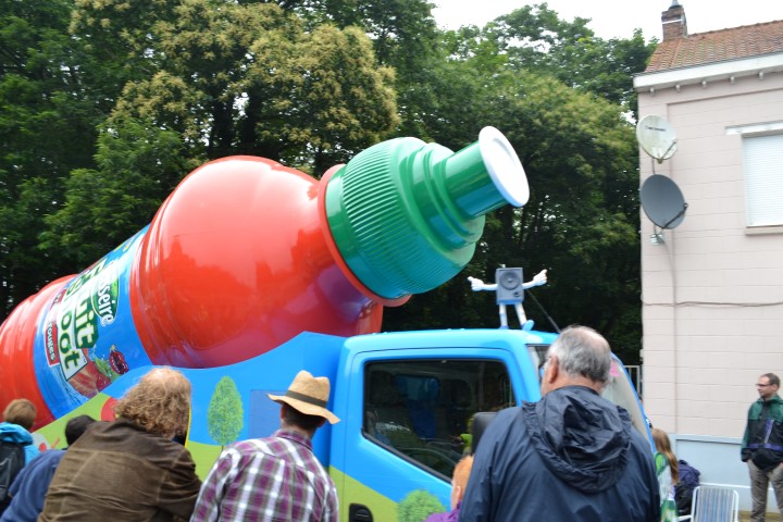 Tegen de middag passeerde de publiciteitskaravaan. Kwamen we niet voor uit de wagen, teveel regen.
