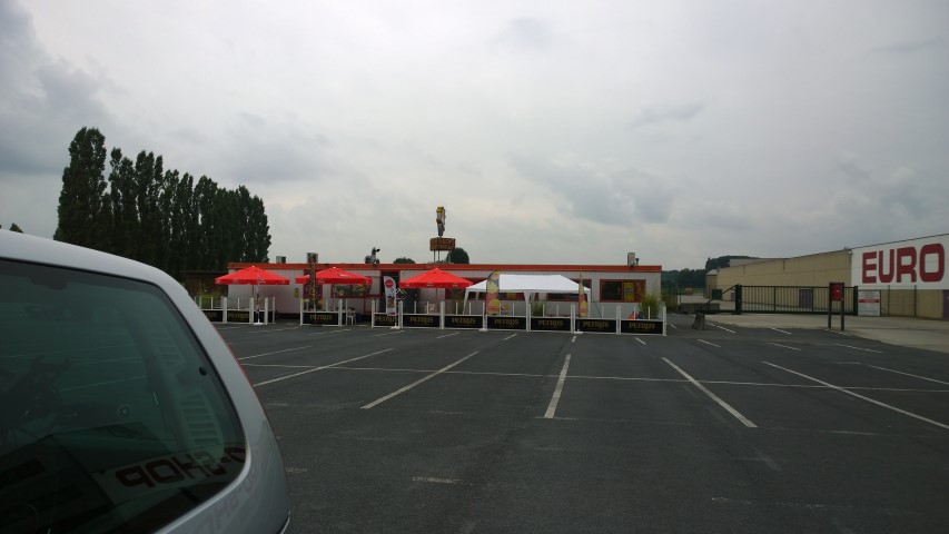 Uiteindelijk strandden we op een mooi stukje flandre profonde buiten Roeselare. Op een parking van een gigantische Euro Shop (meubels en kitsch, dixit meneertje Mertens), waarnaast een frituur. Met de neus van de wagen naar de weg, met arrière van de wagen naar de parking. Gegarandeerd een dagje Vlamingen kijken. En dat hebben we gretig gedaan.