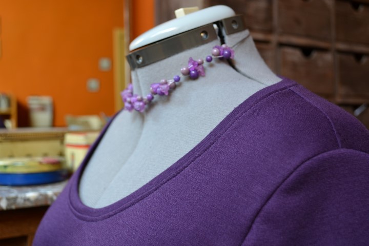 De hals maakte ik in eerste instantie niet helemaal netjes, en ik beloofde mezelf: als de mouwen en de onderkant wel goed gaan, doe ik de hals helemaal opnieuw.