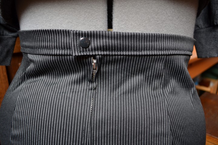 Alles weer fijn gelukt, rits, lendenband, split… zalig. De zwarte stof naait gewoon ook zalig: is heel stevig maar niet te dik.