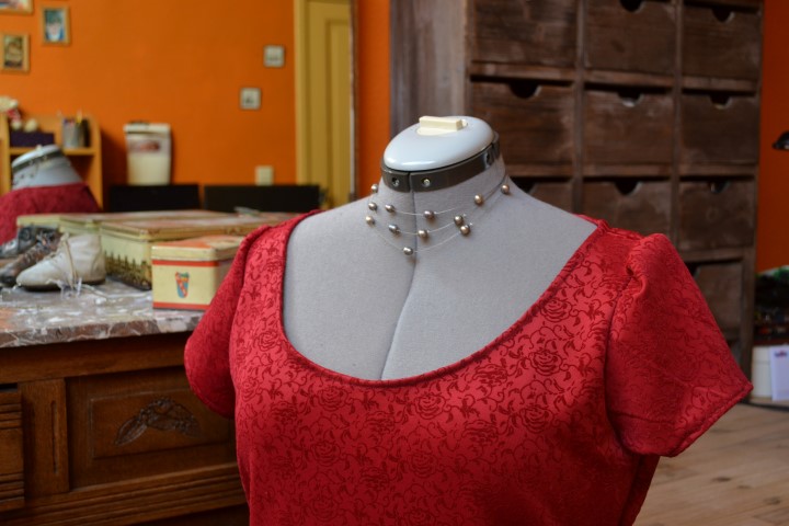 Bij In den beer toverden ze een alternatief boven, waar ik wel voor te vinden was. Een fluweelachtig (maar synthetisch) stofje in het rood. Mooi.