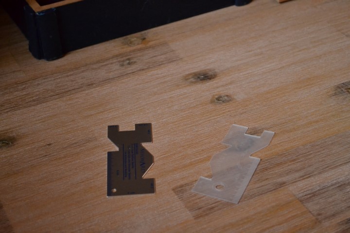 Ik heb wel wat meters in verschillende lengtes en van verschillende soorten. Zoals de klassieke lintmeter, een lange flexibele lat (60cm), een kort doorzichtig latje, maar mijn grootste vriendje is nog altijd mijn zoommaatje. Eerst had ik een plastieken zoommaatje, heel handig in gebruik maar met een paar nadelen. Het is een beetje als een kameleon, en niet makkelijk terug te vinden als je het gedachteloos ergens gelegd hebt. En als je het gedachteloos op je strijkplank gelegd hebt: het smelt onder een heet strijkijzer. Dus: een metalen zoommaatje is uw grootste vriend.