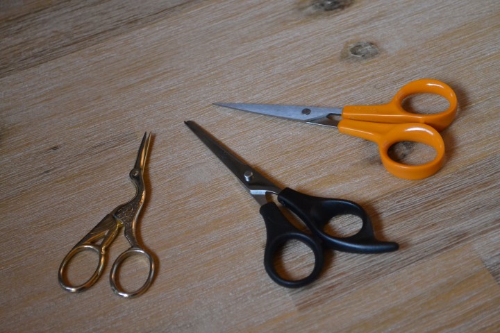 Scharen in het meervoud, ja. Je hebt natuurlijk de heilige schaar om stof te knippen, waar alleen stof mee geknipt mag worden, en waar niemand anders mag aankomen. Dan heb je een papierschaar om patronen te knippen en zo. Maar dan heb je ook een klein schaartje, om draadjes af te knippen. En ondertussen heb ik 3 schaartjes: eentje dat op mijn naaitafel ligt, eentje dat op mijn strijkplank ligt, en een dun schaartje om de draad van onder de coverlock te halen om af te knippen. (dun schaartje dat eigenlijk bij mijn zetel ligt en handwerkschaartje is ook). Meerdere exemplaren is gemakkelijk omdat je er zo altijd wel eentje bij de hand hebt.