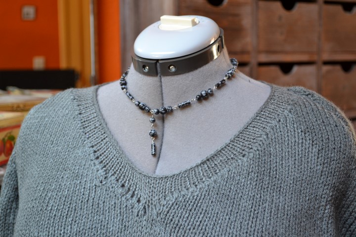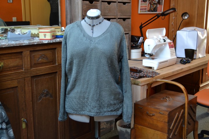 Eerder al breide ik een versie van de Antalia sweater, als probeersel. Ik was er toen redelijk tevreden over, en breide hem nu in donkergrijze Stylecraft Special DK, omdat ik wil dat het een makkelijk wasbare trui is.