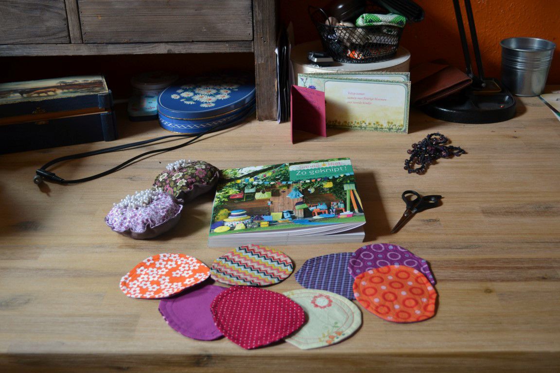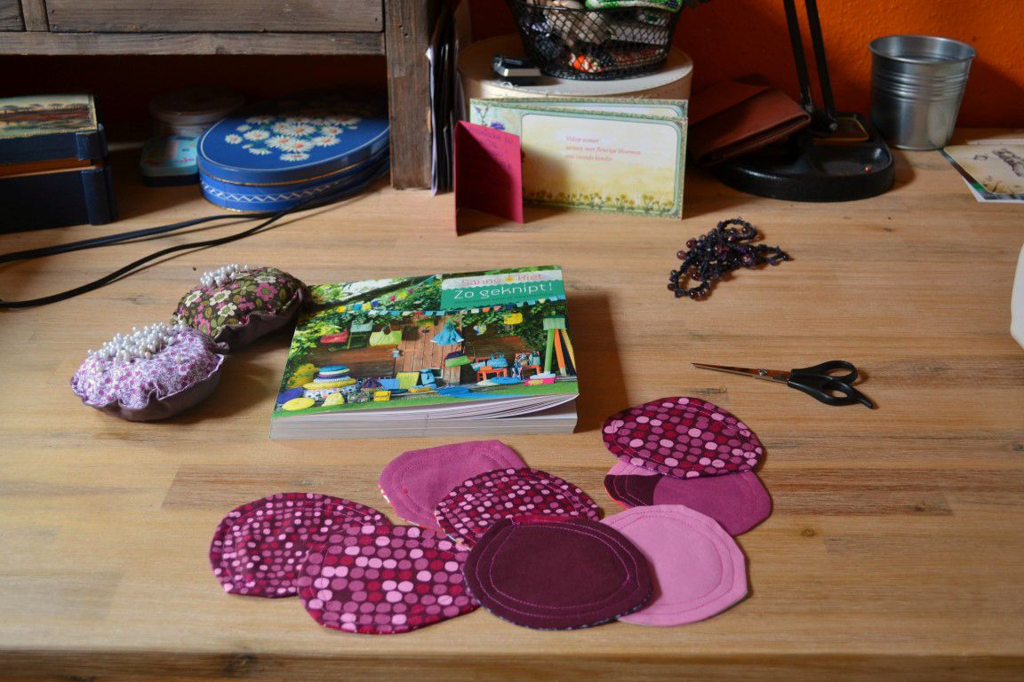 Sedert ik mijn mooie naaitafel heb, gebruik ik weer onderleggertjes om mijn kop koffie of glas water op te zetten. Want ik zou niet graag hebben dat ik kringen maak in mijn tafel. Die onderleggers zijn wellicht dingetjes die de kinderen ooit in school gemaakt hebben. Ondertussen zijn ze vuil en smoezelig, en omdat ze in vilt gemaakt zijn, heb ik weinig zin om ze in de wasmachine te steken.