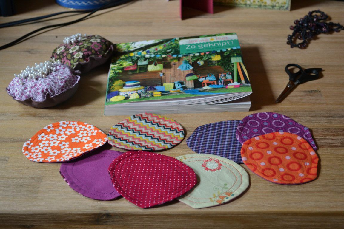 Als basis en uitleg gebruikte ik de onderleggers uit het boek Zo geknipt. En op een voormiddag had ik 8 onderleggertjes. Langs de ene kant allemaal stukjes uit een reep die ik van een te groot laken knipte.