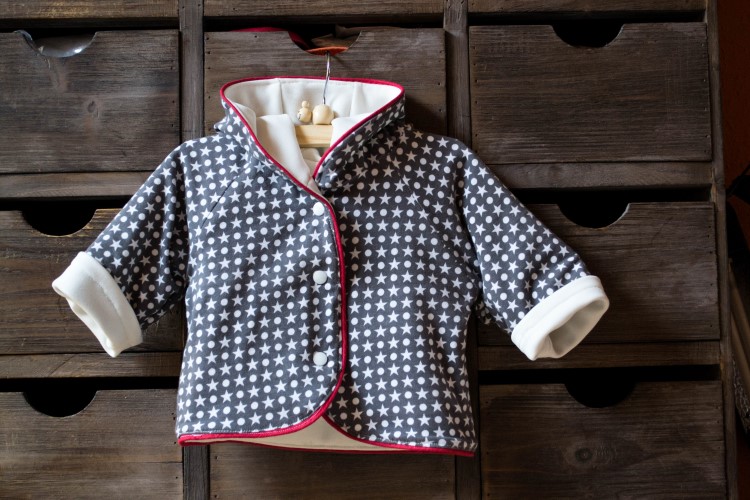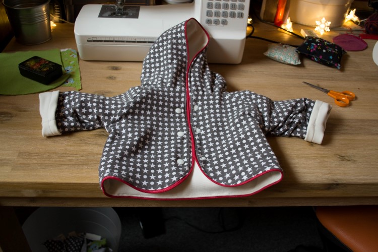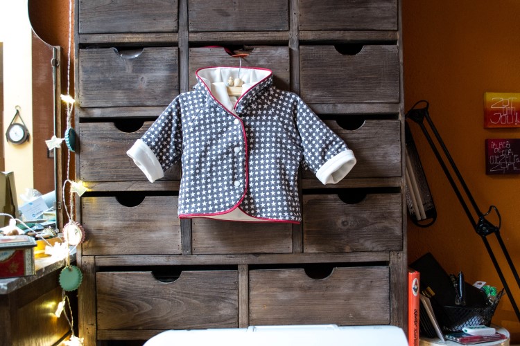 En toen ik bezig was met de foto’s kwam het besef: maar f*ck, dat jasje is met die kampsnaps echt perfect omkeerbaar! De knoopjes kunnen toe en al! Dus, de sterretjes en bollekes kunnen ook aan de buitenkant. Zalig!