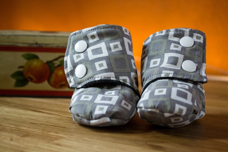 Ik kreeg van een collega een patroontje voor de schattigste baby booties ever. Het bleef een beetje liggen om inspiratie te verzamelen. Wat later kreeg ik van de Andere Oma in Spe een doos vol met stof, waarin de perfecte stofjes voor deze booties. In mijn schuiven zitten genoeg overschotten om die perfecte stofjes aan te vullen.