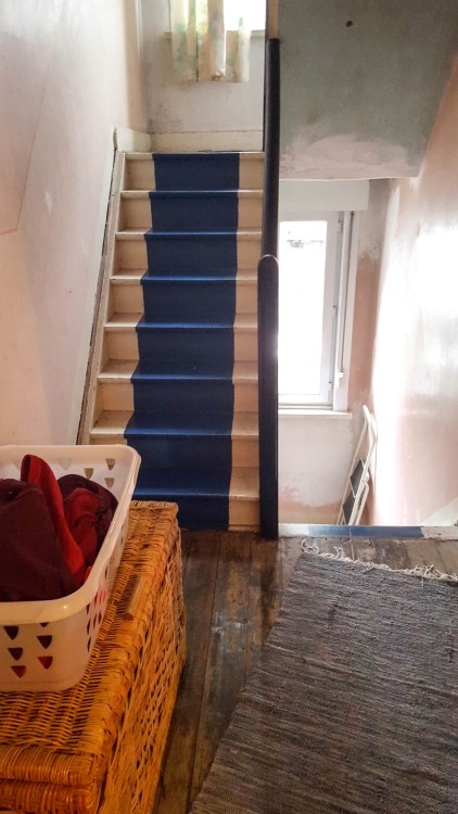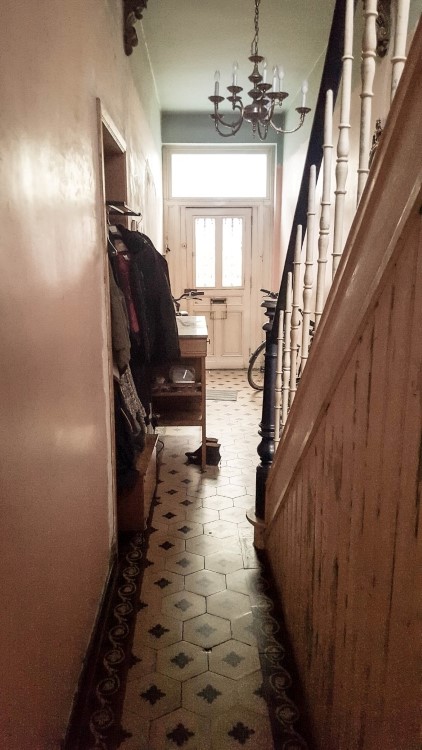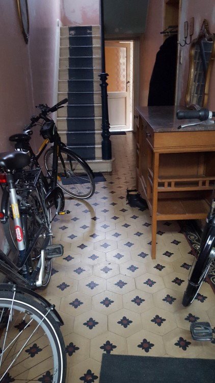Welkom. De gang is in die bijna 25 jaar nog steeds niet geschilderd, maar na een tijd zie je dat niet meer. Ik ben zo blij dat het lelijke rek verdwenen is, en dat er nu een mooie kast staat. Onze fietsen staan er ook, en dat vinden we niet erg.