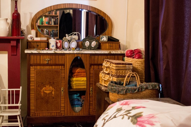 We gaan naar boven. De ‘master bedroom’, zoals ik ze graag noem, vind ik een zeer fijne plek in ons huis. Met nog meer kringwinkelgeluk (de kast zelf deze keer):