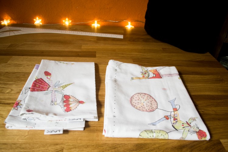 Lakentjes uit tweedehandsstofjes die ik kreeg van Andere Oma Nadine (deze worden door sommigen misschien herkend als lakens van Ikea):
