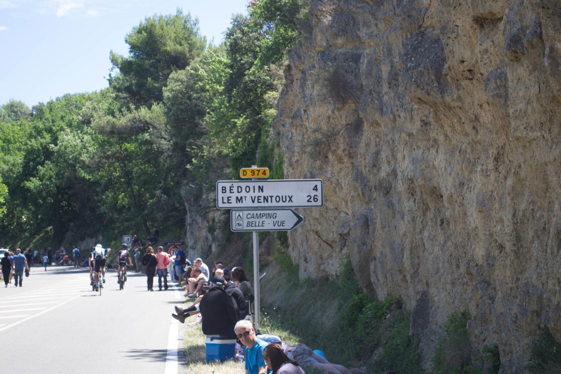 Deel 1 eindigde net voor de tourrit naar de Mont Ventoux. Daar pikken we weer aan. Het werd een erg drukke bedoening, die tourrit. Wellicht door het inkorten van de rit (de wind blies te gevaarlijk bovenop de Mont Ventoux, waardoor de streep 6km vroeger dan voorzien aan Chalet Reynard gelegd werd). Daardoor moest een deel volk beneden verhuizen, en wij dachten ook net beneden te gaan staan. Daarnaast was er nog iets wat we helemaal over het hoofd gezien hadden: 14 juli! De Franse feestdag! Iedereen thuis, iedereen tourrit gaan kijken. Ergo: véél volk.