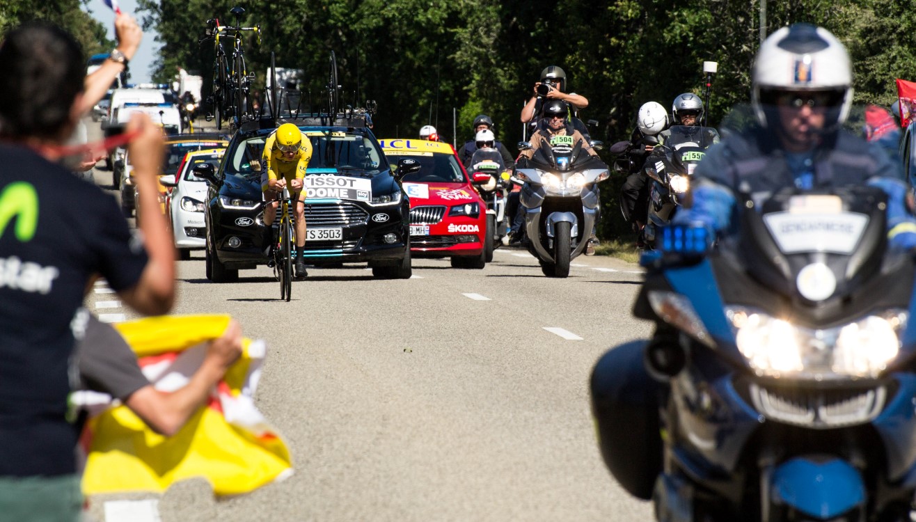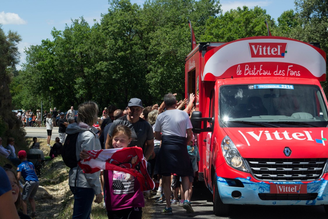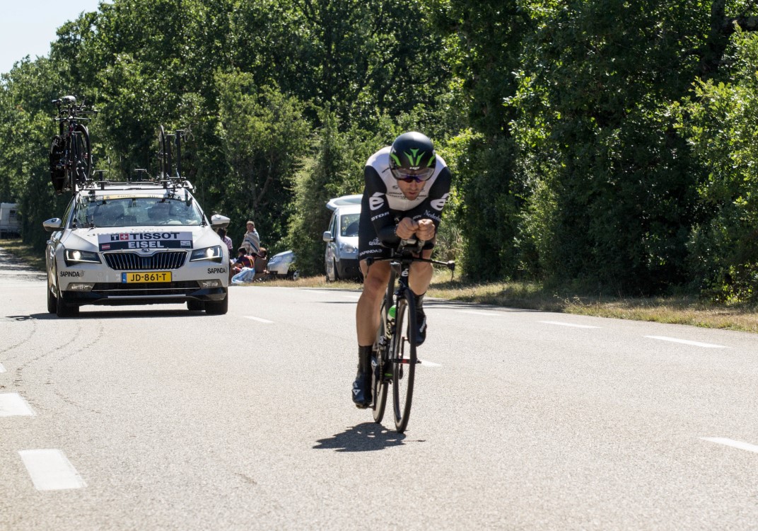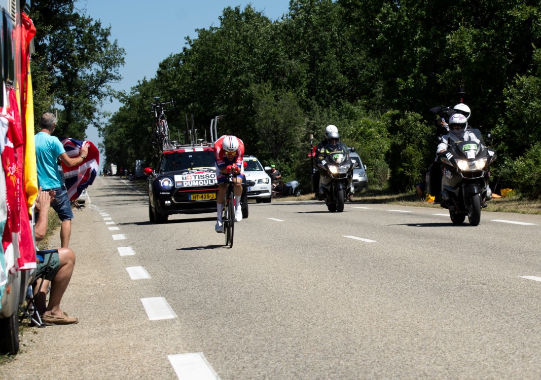 Van zodra we de avond voordien Bidon uitreden, hadden we geen internet meer. Daar op het plateau waar we stonden, was geen internet. Ik denk dat vele mensen rondom ons in hun campers ook geen zicht op de wereld hadden. Waardoor we het nieuws (de aanslag in Nice) pas na onze thuiskomst hoorden. Tijdens onze dag op de tijdrit wisten we van niets, en misschien was dat wel beter. Het publiek waar we tussen stonden was zeer beschaafd, en het was ook niet druk. Er werd met evenveel enthousiasme geroepen naar álle renners, boegeroep hoorden we niet. Het was een heerlijke dag.