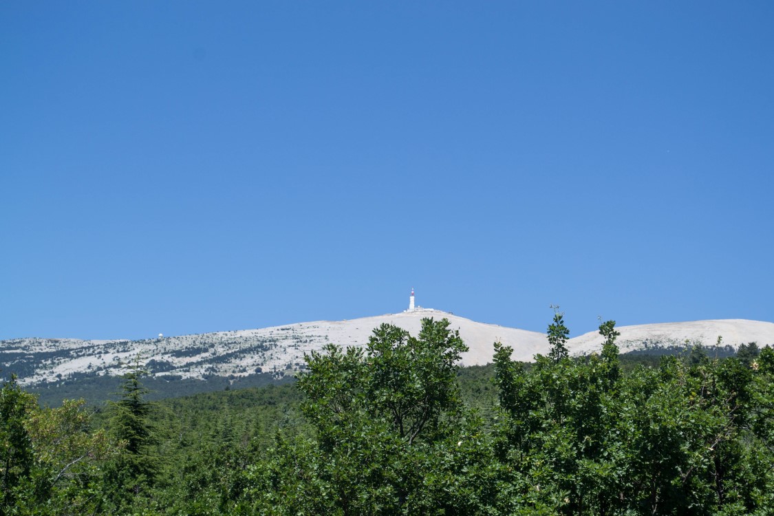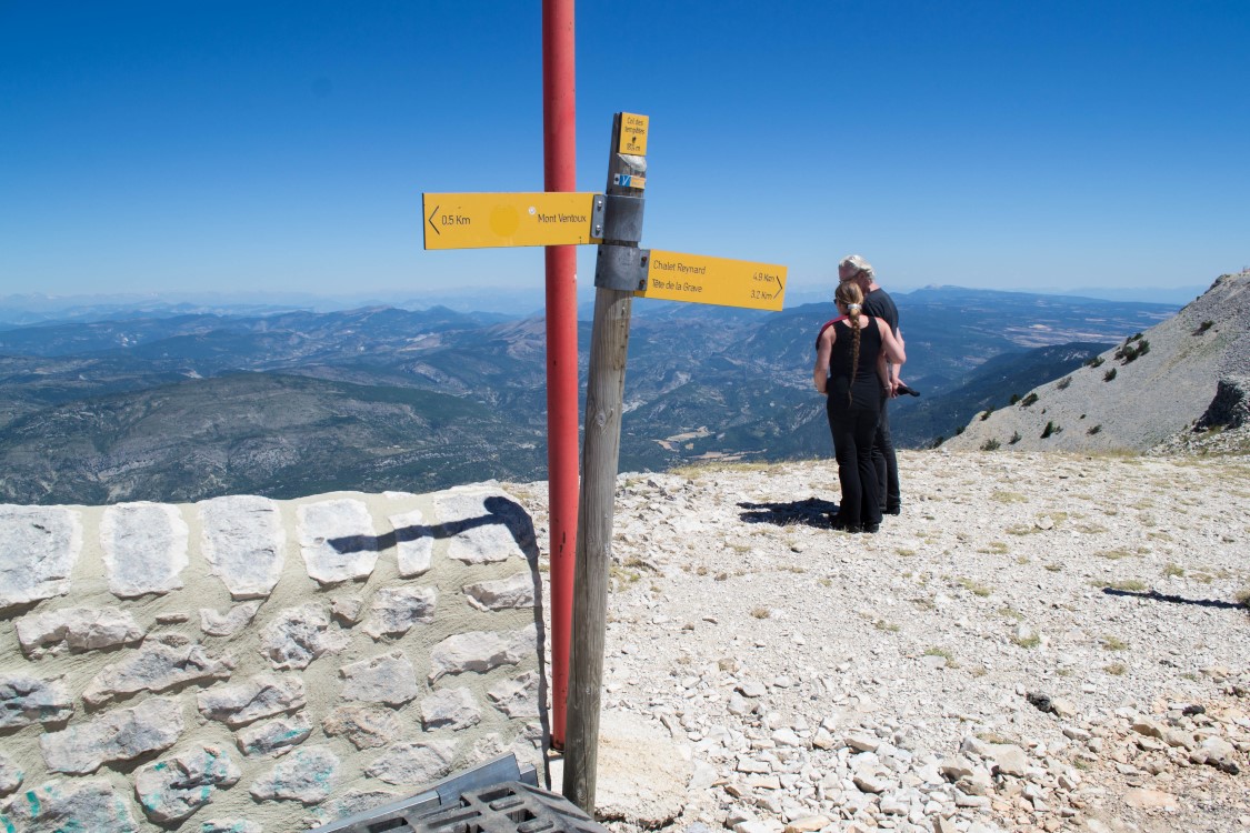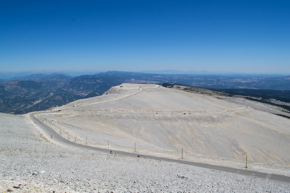 We zien heel veel fietsers passeren, naar omhoog en naar beneden. De weg van Bédoin naar de top is de bekendste bij wielerliefhebbers, en is ook die die de professionele renners het vaakst doen in wedstrijden. We hebben respect voor elke fietser, of die nu traag gaat of snel, recht een mooi tempo peddelt of de berg opzwalpt. We zouden het zelf nooit kunnen.