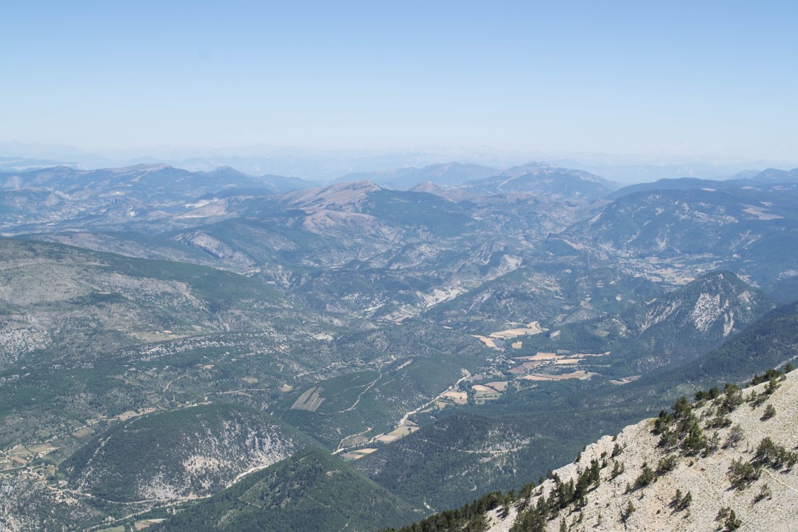 We rijden langs de kant van Malaucène de berg weer af, met nog een stop bij een mooie panoramaplek.