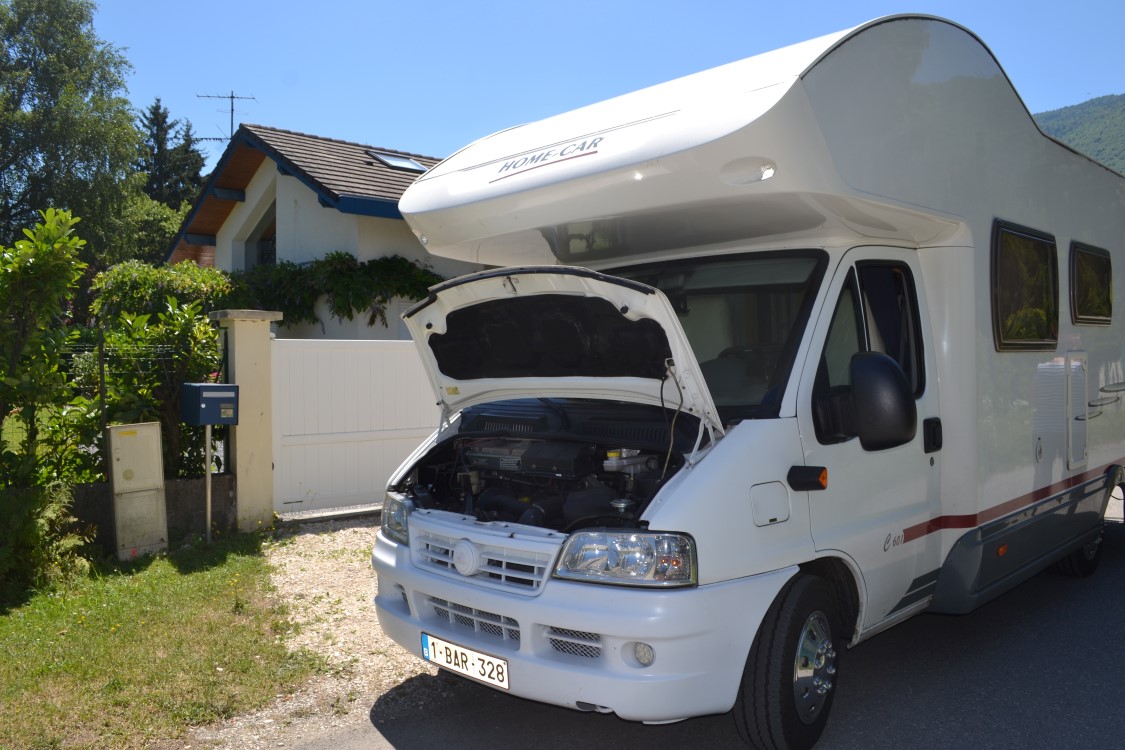 Het was uiteindelijk 15u30 tegen dat er iemand was. Vriendelijke mens. Hij constateerde dat er een probleem was met de remmen. De mobilhome reed uiteindelijk nog, en hij adviseerde ons om naar onze camping te rijden, en daar af te wachten. Het was zondag, er was niets open, en hij zou de ochtend nadien bekijken wat de mogelijkheden waren, en ons (in samenwerking met Touring) laten weten wat er kon gebeuren.