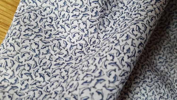 En, euh, jullie hebben het wellicht al lang gezien, maar ik zag het pas toen het kleedje volledig af was. Het motiefje op de stof? Geen romantische bloemetjes, maar dolfijntjes!