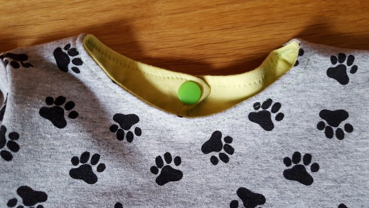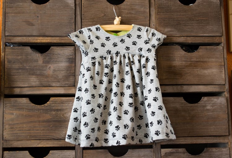 Verder maakte ik nog een kleedje voor de baby van een vriendin van Lies. Ik vind dat de jonge mama dat super doet met haar baby, en ik vind dat zoiets een cadeautje verdient. Dus koos Lies een stofje uit mijn schuif, en ik flanste met veel plezier een kleedje in elkaar. Het ging supergoed, muziekje erbij en lekker meezingen, het was echt leuk om te maken. En we zijn met z’n allen content van het resultaat.