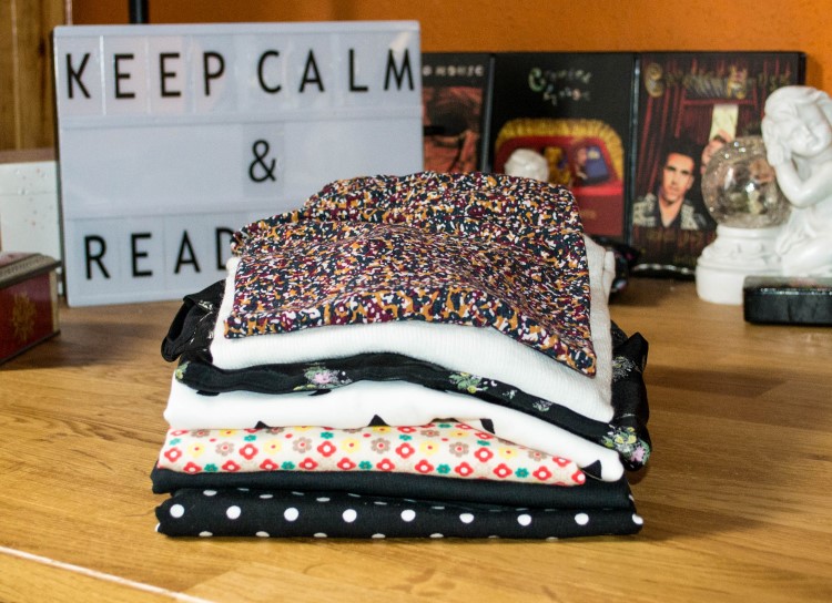 Een groot deel ervan (de onderste van de stapel) passeerde hier al, het zijn shirts om mee te slapen (en een short). De bovenste zijn voor vandaag. De moed ontbrak me om foto’s te maken met het statief, het is dus allemaal een beetje uit de losse pols.