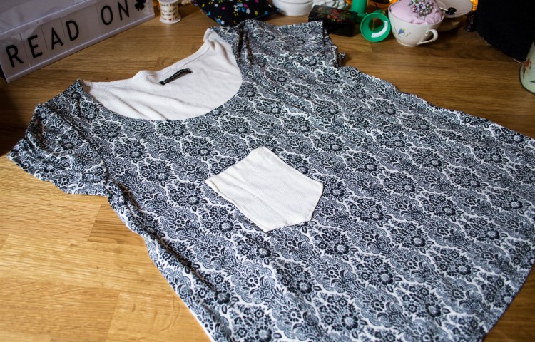 Het tweede werd weeral! alweer! een Deer & Doe Plantain shirt. De stoffen, vooral het stuk dat ik gebruikte voor de rug, zijn nogal flodderig, en het shirt werd dus ook flodderig. Maar ik vind het best wel ok.