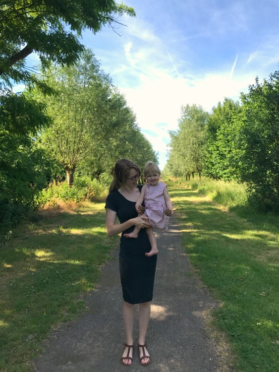 Vorige week had ik al een heel bericht klaar over een zomerkleedje waar ik heel tevreden over was, maar het belandde uiteindelijk in de concepten. Ik kreeg de foto’s niet goed, en besliste achteraf eigenlijk ook om het nog aan te passen. Het kleedje werd gemaakt in navolging van het zomerkleedje dat ik onlangs maakte. Ik gebruikte het Butterick B5812 patroon, maar maakte het een maat kleiner (14 ipv. 16). En ik gebruikte de A versie, met aangeknipte mouwen. In dat patroon wordt gewerkt met beleg: een apart beleg voor de hals en armsgaten. Ik snapte de uitleg van het beleg voor de armsgaten voor geen meter, maar het lukte wel vrij goed. Het grote probleem was: het beleg kroop naar boven, en de stof was te dun om het onzichtbaar vast te naaien aan de binnenkant. Ik was redelijk content maar besliste uiteindelijk dat ik toch niet content genoeg was, knipte de hele zwik eraf en zoomde de randen om. Voila. Met het eindresultaat ben ik behoorlijk content. Niet helemaal, de hals is en blijft niet naar mijn goesting. Ik steek het op de dunne stof. Maar het is een zalig zacht stofje, en het kleedje zal wel gedragen worden. Ik heb enkel een foto van het kleedje in de versie met beleg. Ondertussen ziet het er dus anders uit.