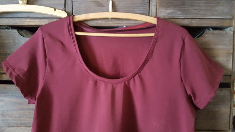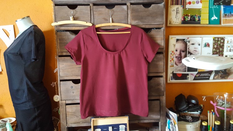 Voor Lies maakte ik een simpel (maar mooi) shirt in bordeaux tricot die ik kocht bij de Modecoupon. Voor de bovenkant (schouders, hals, mouwen) gebruikte ik het Deer & Doe Plantain patroon, de onderkant nam ik over van een shirt dat ze me gegeven had. Het is zeer mooi uitgevallen, het naaien ging erg vlot en ze staat er ook heel mooi mee. Deftige foto’s heb ik niet, alleen 2 foto’s gemaakt met mijn telefoon.