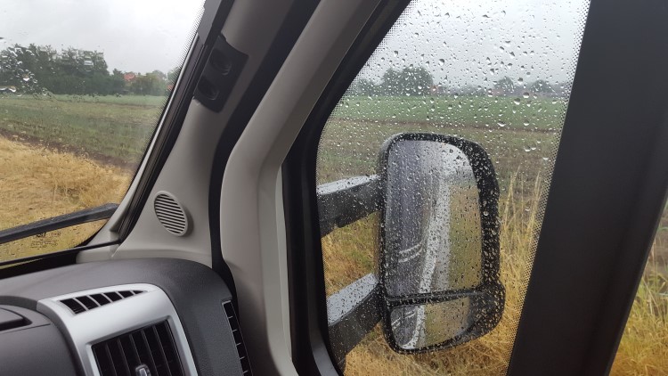 Daarna naar Londerzeel, waar we nog eens goeiendag gaan zeggen tegen Nic zijn ouders en Lies, en ondertussen de watertank bijvullen. En dan zijn we echt, écht weg! Richting Wallonië. Onder de ochtend had het urenlang hard geregend, tegen dat we in Gent en daarna in Londerzeel waren, werd het minder en ging het over. Maar we rijden in de richting van het slechte weer, en in Wallonië begint het weer te regenen. We rijden eerst naar een camperplaats in Soumagne op een provinciaal domein, maar die lijkt naar ons gevoel nogal opgedoekt. Het is er verlaten en stil. Via de Campercontact app een andere camperplaats gezocht, een twintigtal kilometer verderop. Een vijftal kilometer van onze bestemming raken we achter een Engelse camper verzeild, die naar dezelfde plaats blijkt te rijden als wij. We beginnen ervoor te vrezen dat er geen plaats meer zal zijn maar wat bleek? Een zeer ruime camperplaats op de parking van de oude mijnsite van Blegny, en er is nog plaats zat. Als de wiederweerga plugt Meneertje Mertens onze elektriciteitskabel in, en we staan perfect. Hoera! Elektriciteit! Zalig. Het blijft zowat de hele dag regenen, dus komen we de mobilhome amper uit. TV kijken, eten klaarmaken, wat prullen en prutsen en naar de proloog kijken.