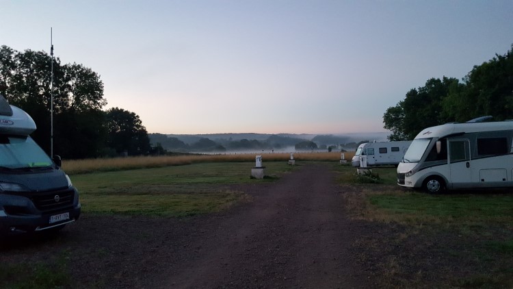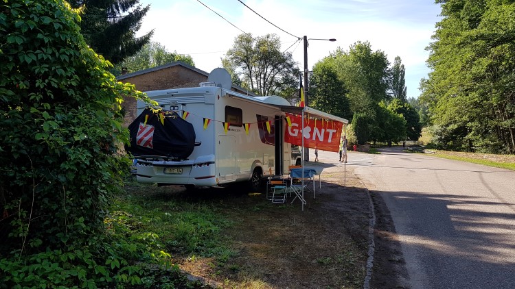 Vandaag slaan we een rit over. Ik had gezien op Google Street View dat het moeilijk zou worden om een plaatsje te vinden en daarbij, het moet plezant blijven, dus af en toe moet het een dag wat rustiger. We gaan niet, zoals vele die-hards, de hele Tour volgen en we gaan niet dag na dag van de ene plaats naar de andere sjezen. We hebben lang gepalaverd of we naar La Planche des Belles Filles zouden rijden, en hebben besloten dat niet te doen. We gaan daar nooit plaats vinden, we gaan zelfs de berg niet oprijden om eens rond te kijken. We blijven voor de rest onze plannen waar we vandaag naartoe gaan, tot op het laatst veranderen. Uiteindelijk vertrekken we rond 7u op de camperplaats in Liefrange, en rijden via België naar Frankrijk.