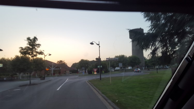 We slaan een rit over en rijden meteen naar de omgeving van Chambéry. Vanaf morgen hebben we een plekje gereserveerd op Le Camping des Lacs in Saint-Jean-de-Chevelu, toevallig op het parcours van de Tour op weg naar de Mont du Chat. Vandaag rijden we naar een camperplaats in de buurt om daar de nacht door te brengen, om dan morgen voor 11u naar de Camping des Lacs te rijden. Voor het eerst voelde ik me niet helemaal gerust op de plaats waar we de nacht doorbrengen, te weinig campers. En veel lawaai. De boeren rijden af en aan met hun tractoren, wellicht aan het oogsten. Maar we zijn moe, en we vallen beiden in slaap als een blok. Niets horen we nog. De wekker staat vroeg, we drinken koffie, ontbijten, doen een kattenwasje en vertrekken nog voor 6 uur in het relatief koele ochtendgloren richting Chambéry. Bij het vertrekken viel me in dat we niet één foto hebben van deze camperplaats, dus namen we er snel nog wat van uit de auto. We sliepen dus bij een watertoren.
