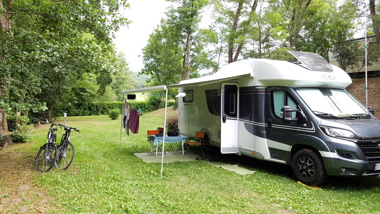 We houden net als de renners een rustdag vandaag. Of ook: een dag om wat te poetsen, op te ruimen en kleren te wassen. We hebben namelijk niet voldoende kleren mee voor 3 weken, dus we hadden voorzien te wassen op de campings waar we gereserveerd hebben. We slapen wat langer, ontbijten op ons gemak, en gaan een eerste machine insteken. Terwijl we wachten tot de machine van een andere kampeerder klaar is (we hadden zoals eerst gedacht vroeg moeten gaan!), wassen we wat dingen met de hand. Daarna plempen we onze was in de machine, en keren terug naar de camper. We kuisen een beetje (vooral Meneertje Mertens eigenlijk), besluiten onze was toch in de droogkast te steken, prutsen wat en gaan de was halen. De camping loopt stilaan leeg op deze maandagochtend. We hadden eerder al besloten de camper te keren in de hoop dat we zo satelliet-ontvangst zouden hebben. Maar al onze buren vertrekken, dus we gaan vragen aan de receptie of we een ander plaatsje mogen. Geen probleem. Meneertje Mertens keert de camper, en op de plaats naast ons hebben we wel satelliet-ontvangst. We zijn content, want eigenlijk staat de camper ook echt wel beter nu.
