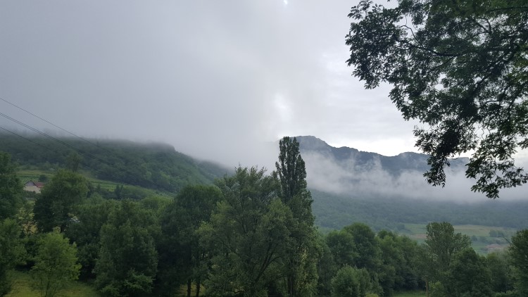 We slapen allebei niet echt denderend (ik al 2 nachten onrustig, ik droom vanalles), ik ben al wakker als Meneertje Mertens wakkerschiet: het is al half zes! Rustig, jong, je moet niet gaan werken. En dan zijn we allebei klaarwakker. Koffie, douchen, ontbijt. We steken nog een machine was in, en hangen die daarna aan de waslijn bij de camper. We hopen dat het weer wat gaat uitklaren, want morgen vertrekken we, liefst met droge was. We zoeken een wandeling, vinden er geen, Meneertje Mertens steekt er zelf eentje in elkaar. Rond 20 over 8 zijn we al weg, stapschoenen aan. En wat een mooie wandeling! Het weer is niet super: rond de 18 graden, en bewolkt. Dat levert prachtige zichten op met laaghangende wolken. We genieten, maken foto’s, met de telelens maakt Meneertje Mertens ook tig foto’s van bloemen langs de weg. We wandelen grotendeels langs de weg, en ook een stuk op een onverhard pad.